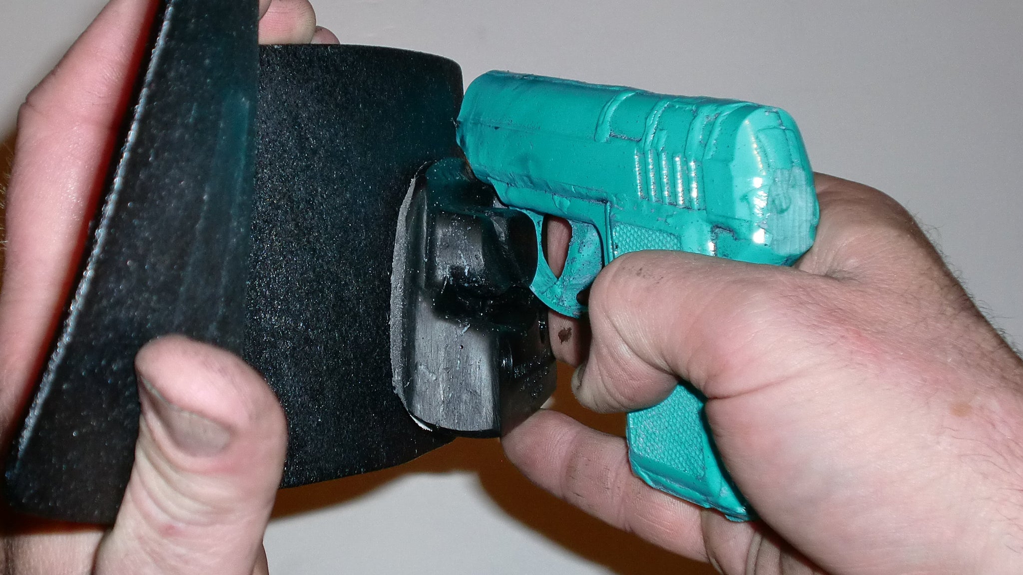 To be sure, this holster is not the best choice if your primary concern is armed robbery. For that you need a holster you can draw from directly, and there are a lot of those available already. This holster is designed for full concealment, with the best speed possible from a full concealment wallet holster. It might not quite be the fastest there is, but it’s a lot less likely to get noticed, and it will insure you have something instead of nothing should something bad happen at work, or anywhere else it could happen where your right of protection isn’t as respected as it should be.  Since you have to take the gun out of the holster to shoot it, this holster also doesn’t come with any of the potential legal baggage that single unit gun/holster combos might have, no matter what state you’re in.