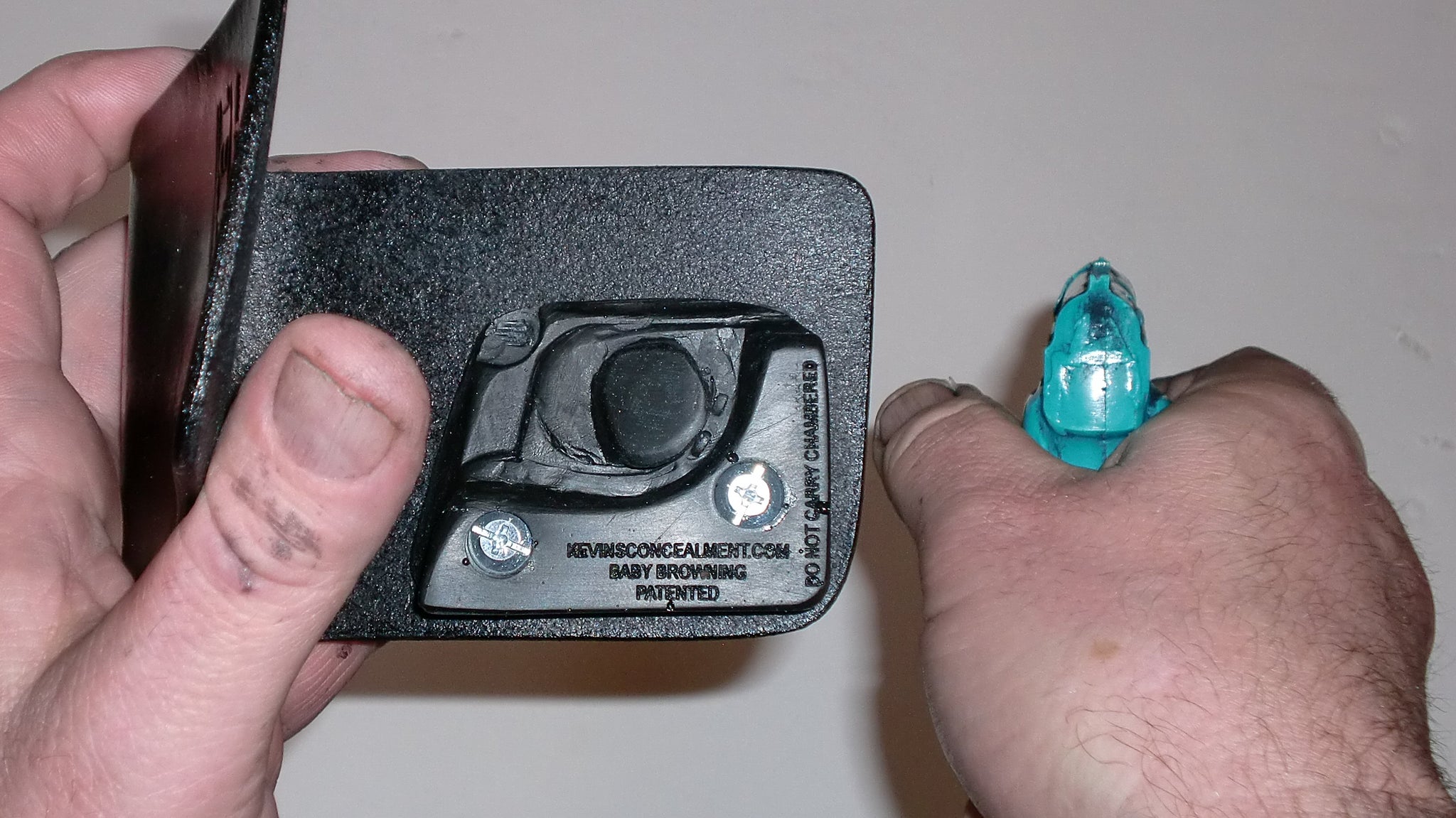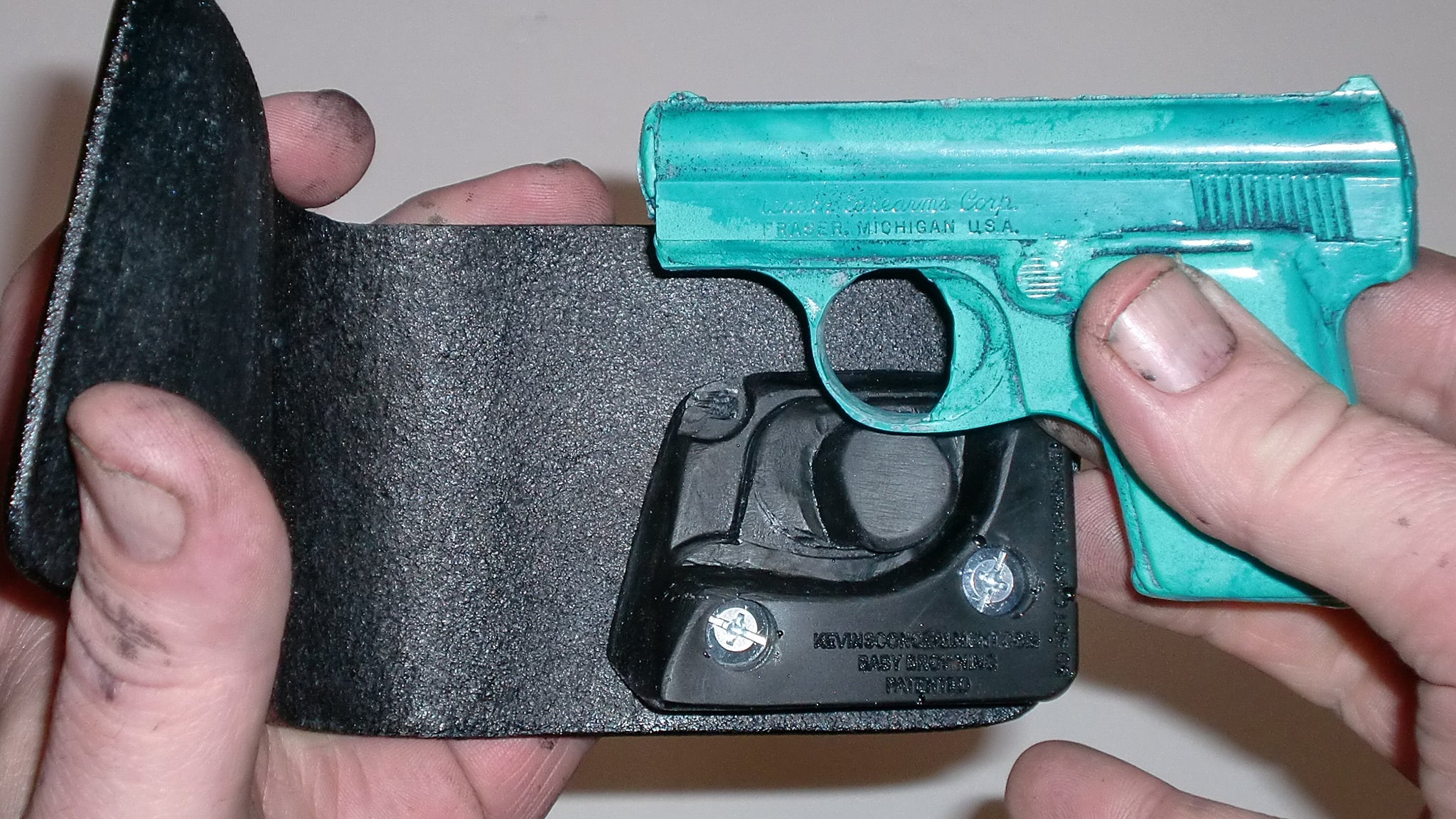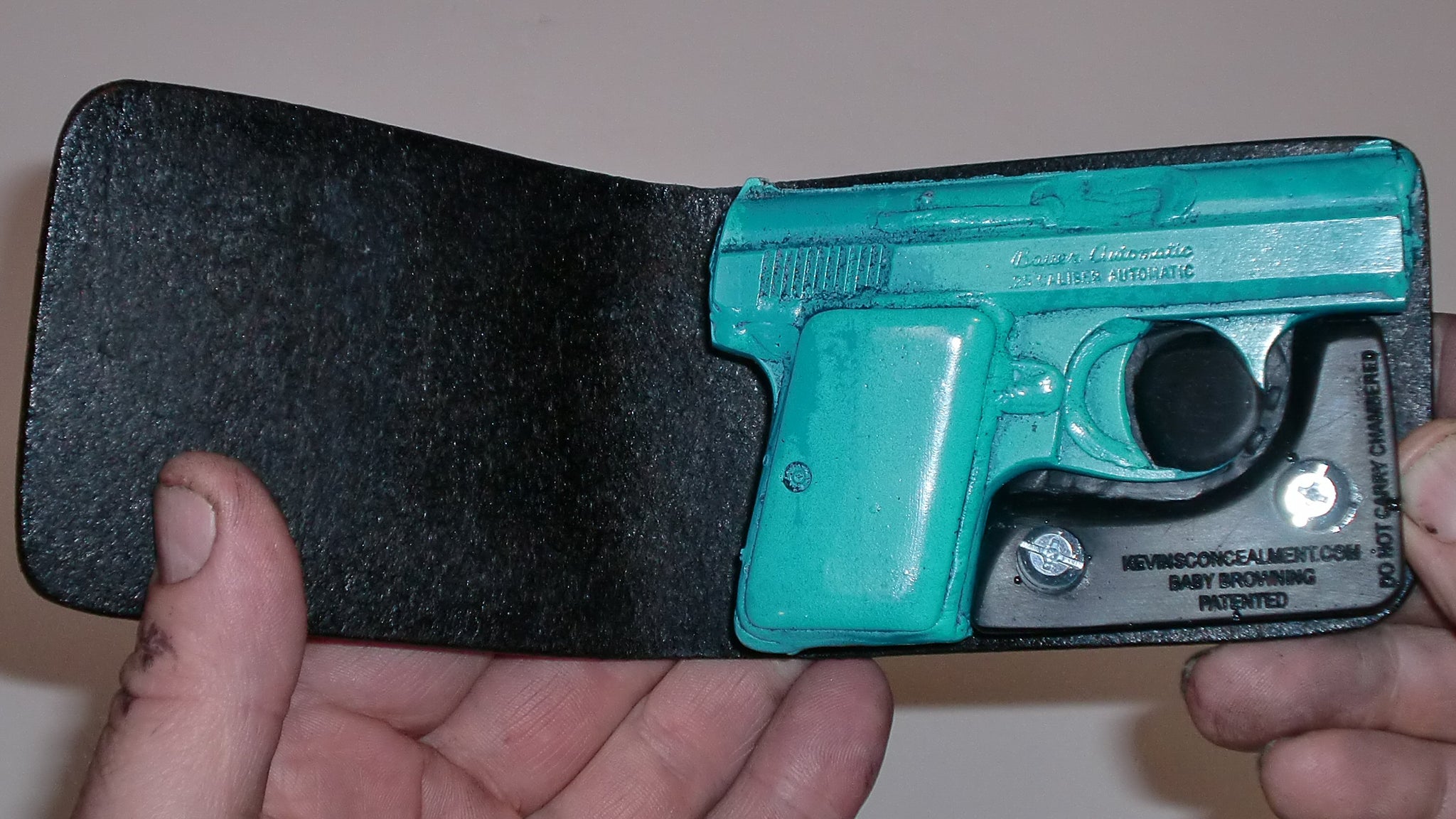 Full concealment wallet holster for the Baby Browning .25 cal pistol.