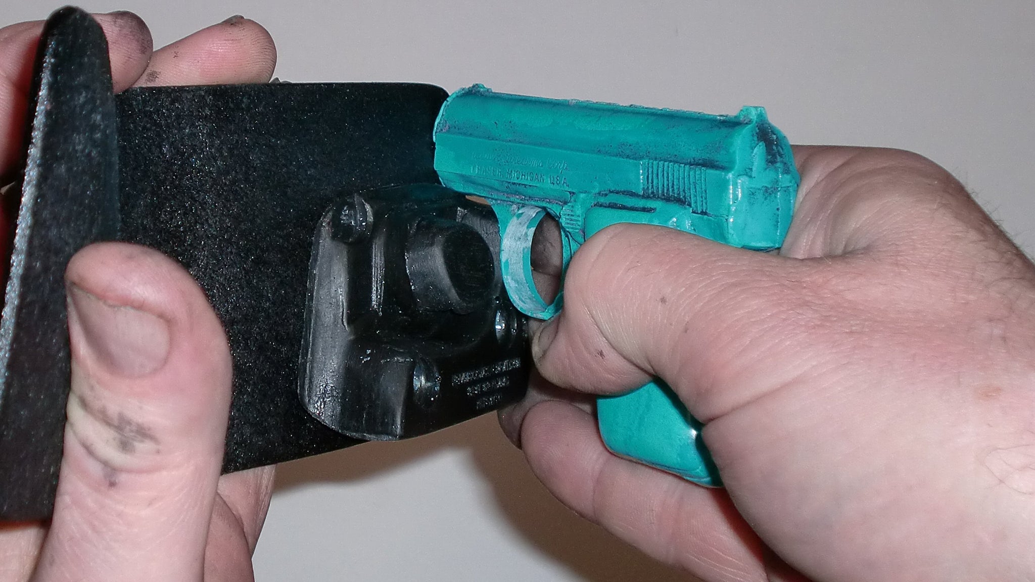 To be sure, this holster is not the best choice if your primary concern is armed robbery. For that you need a holster you can draw from directly, and there are a lot of those available already. This holster is designed for full concealment, with the best speed possible from a full concealment wallet holster. It might not quite be the fastest there is, but it’s a lot less likely to get noticed, and it will insure you have something instead of nothing should something bad happen at work, or anywhere else it could happen where your right of protection isn’t as respected as it should be. Since you have to take the gun out of the holster to shoot it, this holster also doesn’t come with any of the potential legal baggage that single unit gun/holster combos might have, no matter what state you’re in.