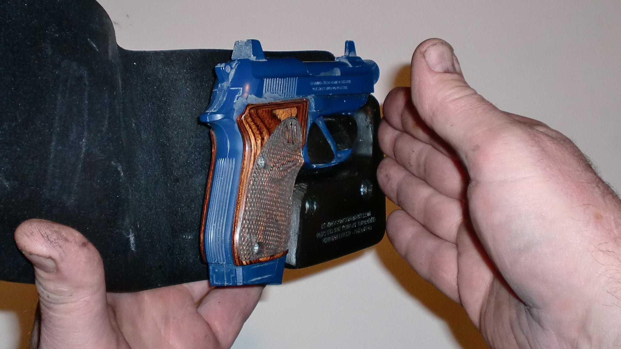 To be sure, this holster is not the best choice if your primary concern is armed robbery. For that you need a holster you can draw from directly, and there are a lot of those available already. This holster is designed for full concealment, with the best speed possible from a full concealment wallet holster. It might not quite be the fastest there is, but it’s a lot less likely to get noticed, and it will insure you have something instead of nothing should something bad happen at work, or anywhere else it could happen where your right of protection isn’t as respected as it should be. Since you have to take the gun out of the holster to shoot it, this holster also doesn’t come with any of the potential legal baggage that single unit gun/holster combos might have, no matter what state you’re in.