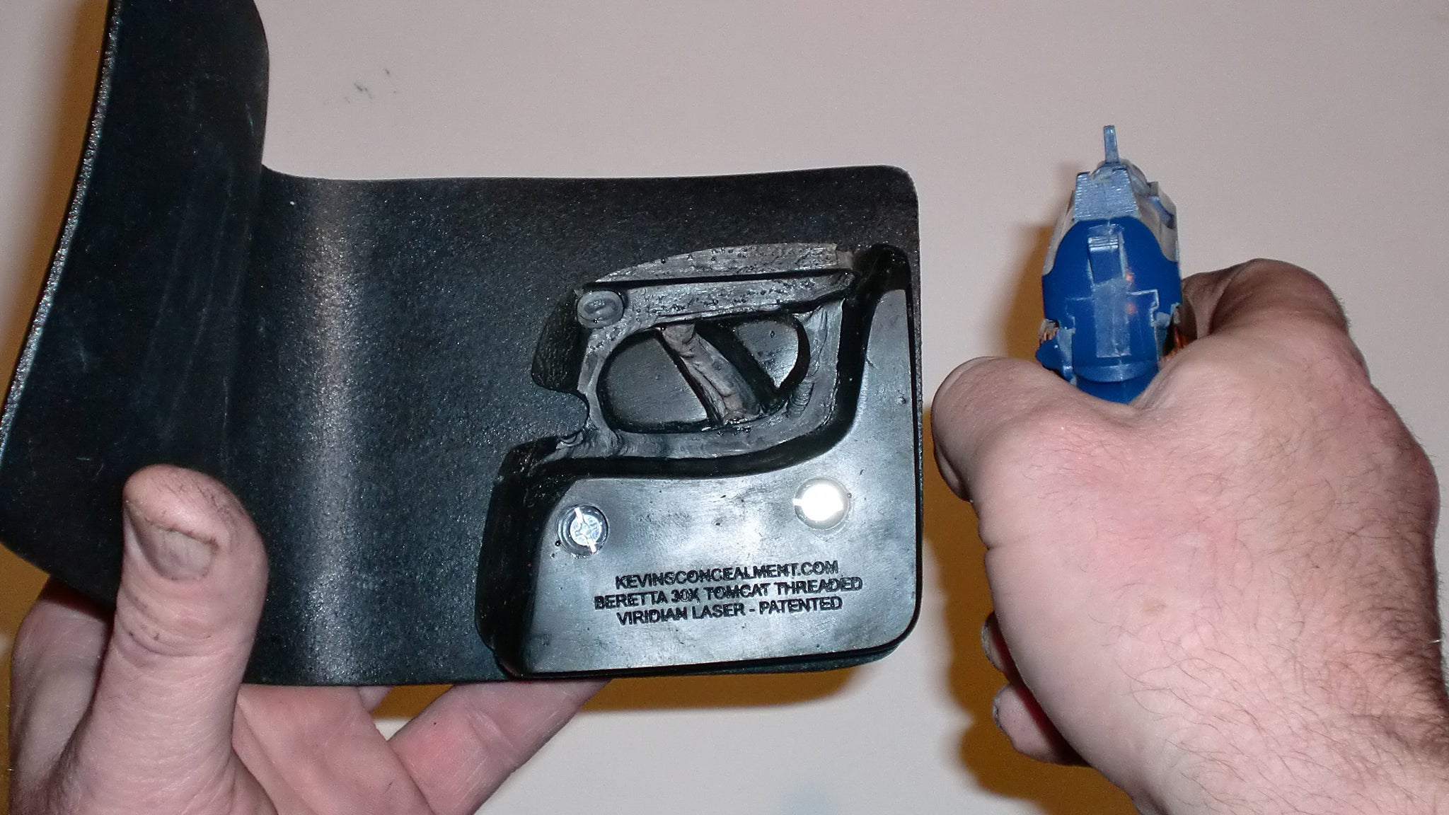 Full concealment wallet holster for the Beretta Tomcat 30X pistol, with standard or threaded barrel, and short or tall sights.